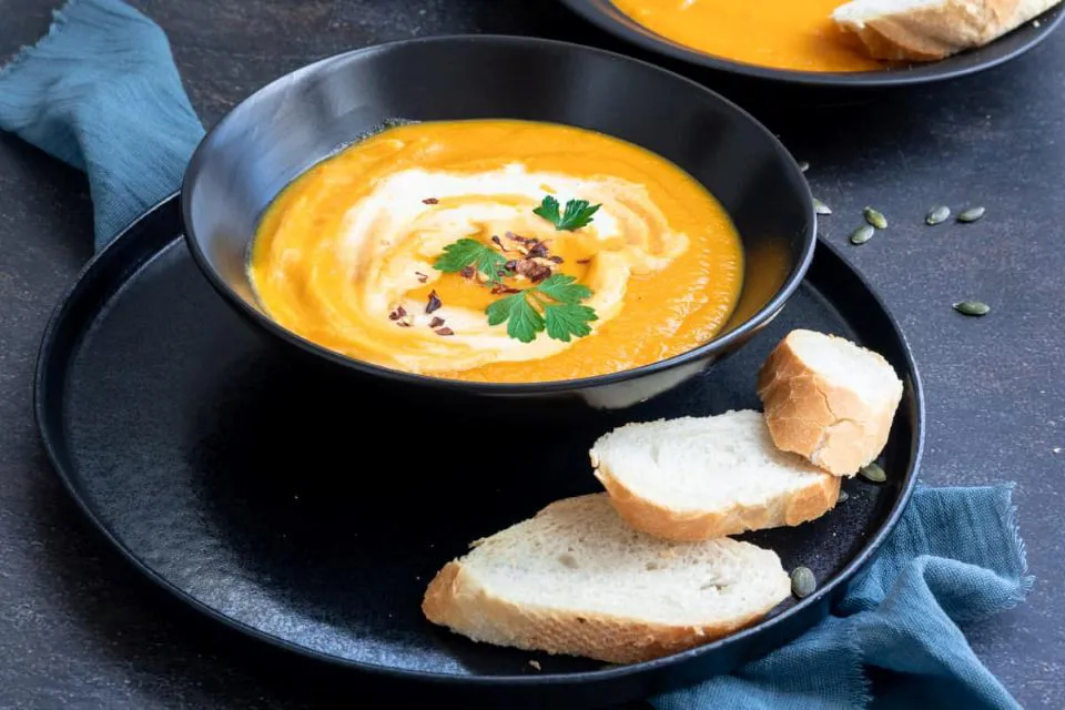 - Canh rau củ như bí đỏ, cà rốt, khoai lang – giàu beta‑carotene và chất xơ.