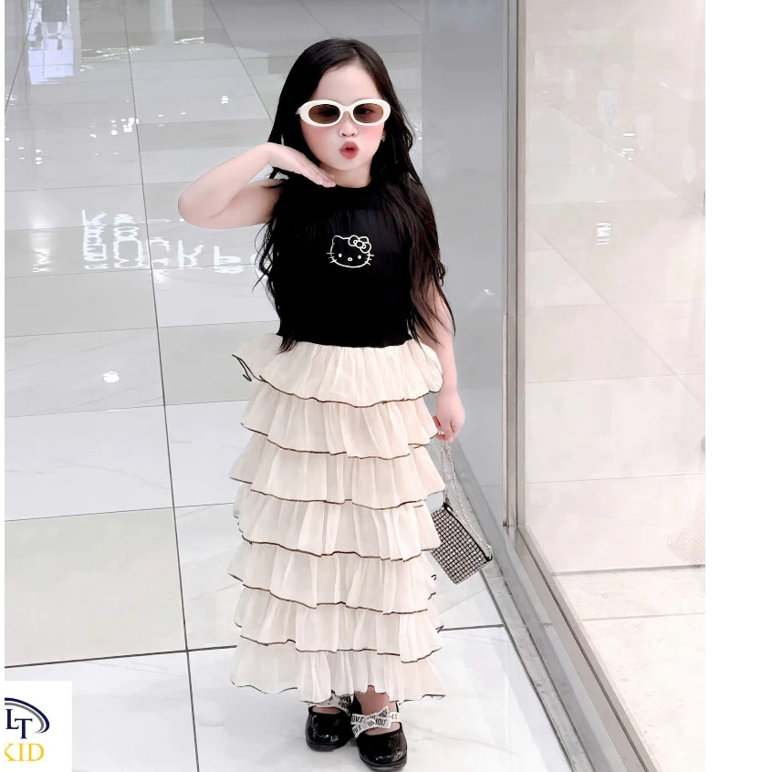 🔥 Váy cho bé gái, set đồ bé gái, váy bé gái áo cotton phối tơ 7 tầng dáng dài bao xinh cho bé 10 – 30kg, Baby Girl đang giảm giá!