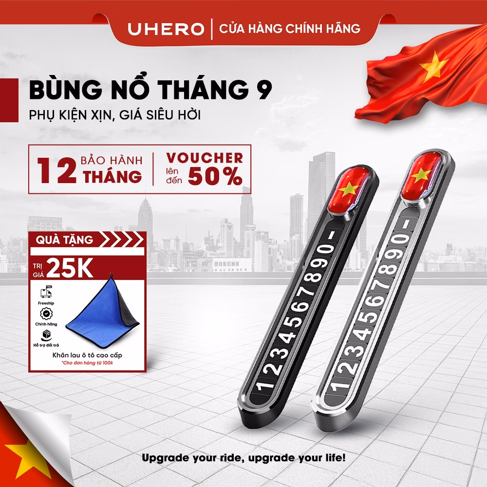 Bảng số điện thoại ô tô UHERO logo cờ Việt Nam gắn taplo tiện lợi là một sản phẩm nổi bật trên thị trường hiện nay. Với thiết kế thông minh và chất lượng cao, sản phẩm này mang lại nhiều lợi ích cho người sử dụng:
