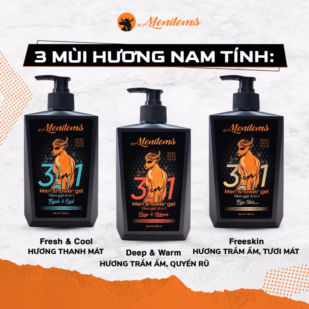 🔥 Sữa tắm gội 3in1 Menitems, hỗ trợ giảm mụn lưng, ngừa mụn, làm sạch sâu, lưu hương nước hoa 285 ml đang giảm giá!
