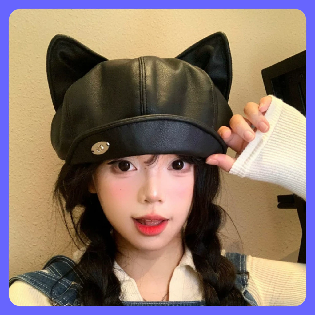 🔥 Mũ bí ngô dáng tai mèo dễ thương nón newsboy da PU bền đẹp cho bạn nữ đi du lịch chụp ảnh quay video đang giảm giá!