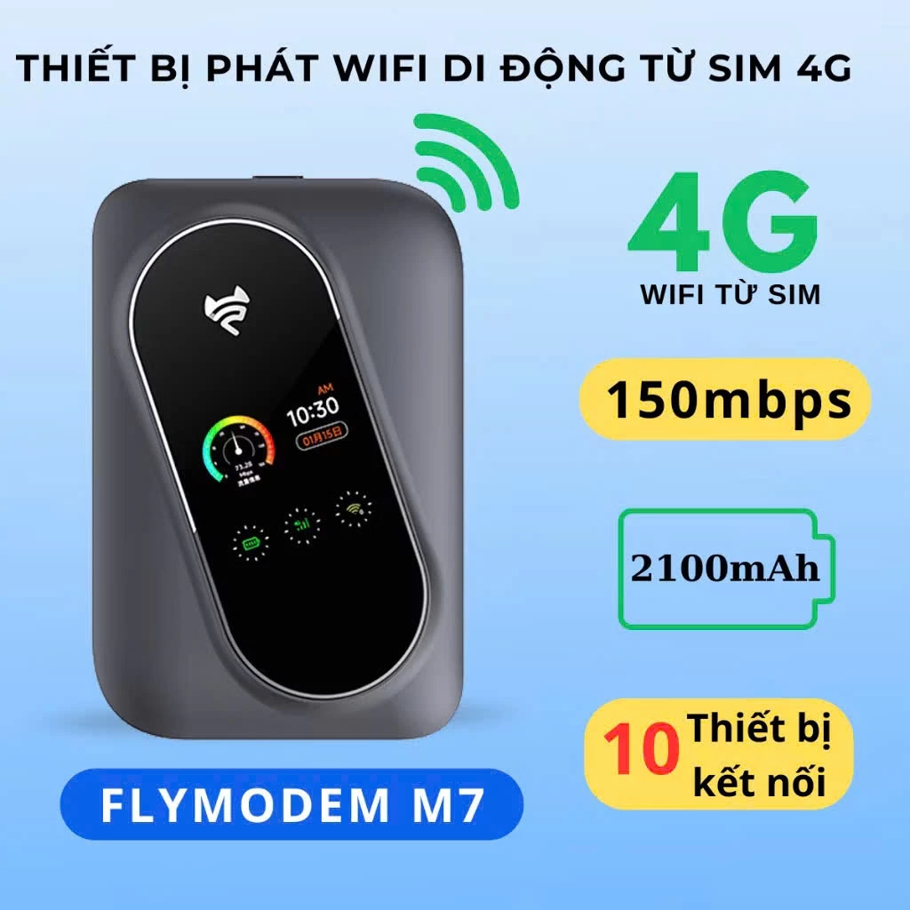 🔥 [TẶNG SIM 4G VINA 500GB] Thiết Bị Phát Wifi Di Động FLYMODEM M7 Màn Hình LCD – Kèm PIN 2100mah đang giảm giá!